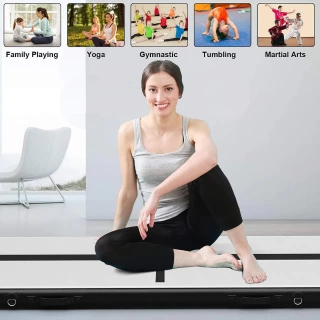 Wide Application -- This inflatable gymnastic mat can be placed on the floor of your home or gym in high-performance training, such as tumbling practice, martial arts, gymnastics, and yoga. Moreover, you can enjoy exercise on the beach, background, grassland, or even on the water.
